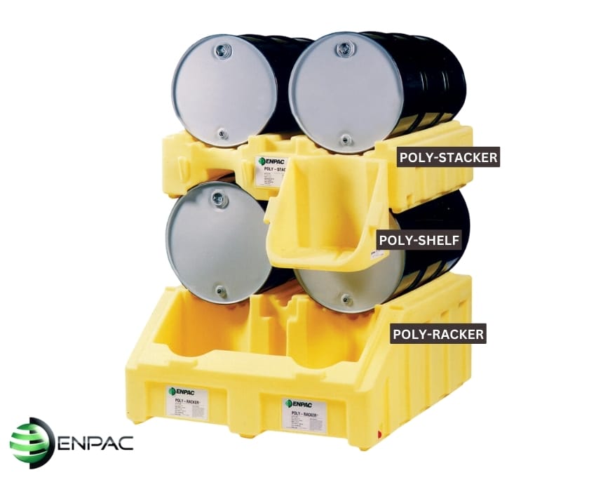 The most efficient & cost-effective multiple drum dispensing & storage system in the market. The complete system consists one Poly-Racker, Poly-Stacker & Poly-Shelf, this set can securely hold 4 standard drums, adding another poly-stacker will help load up to 6 drums in one stack !!!