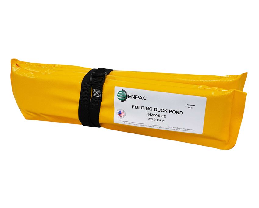 When it comes to portability, ease of use, and spill response time, nothing beats the Folding Duck Pond mini spill containment berm.Ā  Made with the same durable high quality as the standard Duck Pond, the new folding type features thinner 2ā€ sidewall with safety-secure strap for easy folding and compact storage.Ā  The extended 6ā€ sidewall height allows 30% more spill contain capacity.